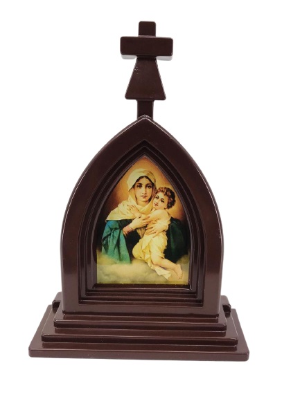 CAPELA MAE RAINHA ACRILICA BASE 18CM MARROM/DOURADO.