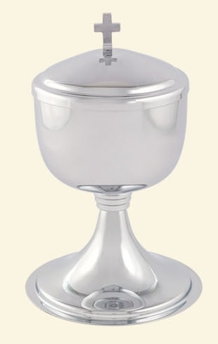 Cibório dourado interno DI com medidas: Diâmetro 9,6cm Altura 18CM Capacidade para 180 partículas Ambula ou cibório Objeto litúrgico usado nas celebrações de Missas para a distribuição da Eucaristia. Fabricado em metal e banhado a ouro ou cromo.