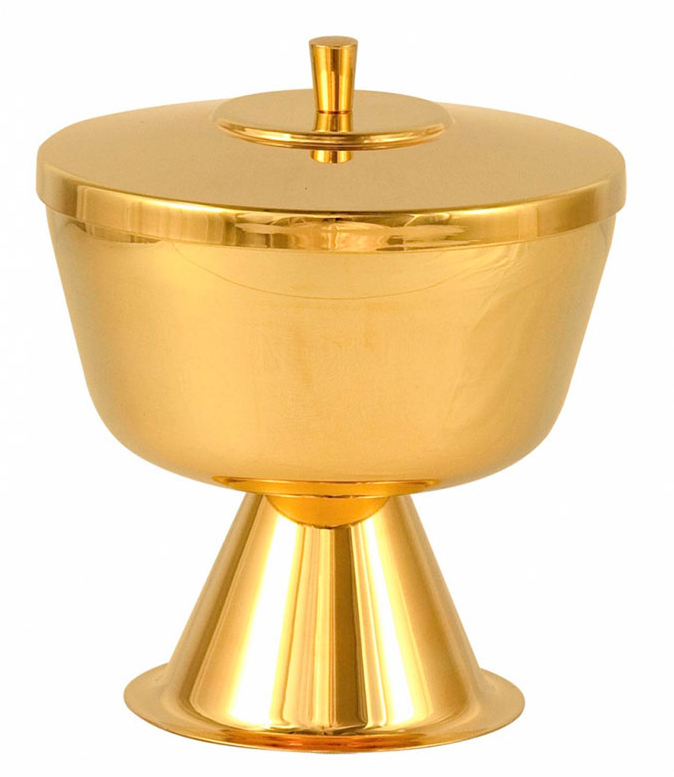 CIBÓRIO DOURADO 15X12,5CM Altura: 15 cm. Diâmetro da copa: 12,5 cm. Capacidade: 300 partículas.