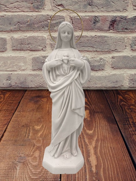 Imaculado Coração de Maria, 31cm em pó de mármore. Acompanha auréola dourada.