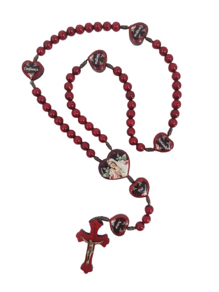 Terço madeira vermelho 8mm Nossa Senhora de Fátima para mães.